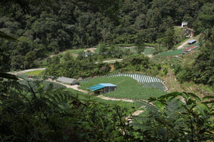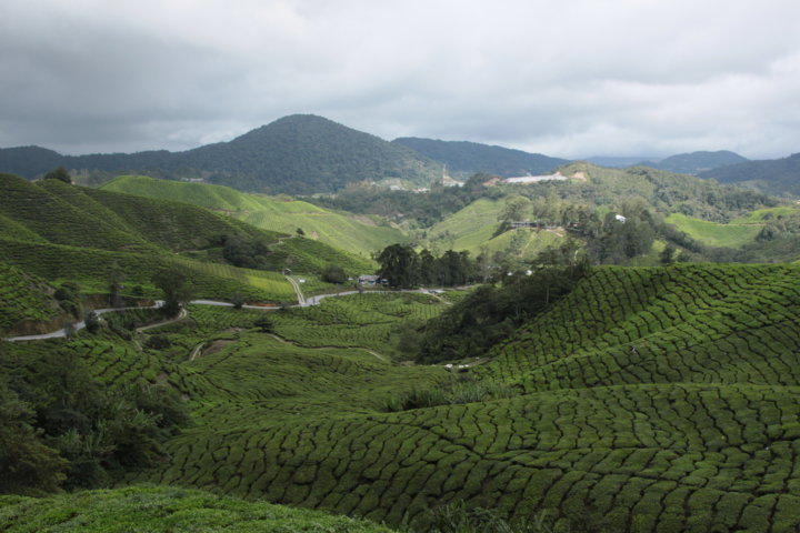 Nas Terras Altas do Cameron – pode encontrar mais aqui – deixei momentaneamente os ambientes tropicais do sudeste asiático e voltei a sentir uma frescura que me fez “regressar” à Europa. Durante os dias que estive na região a paisagem revelou-se uma caixinha de surpresas: colinas cobertas de estufas – couves, alfaces, morangos… -vastas florestas de pinheiros e de fetos; uma enorme e parasítica raflésia; no monte mais alto da região penetrei numa primitiva floresta Mosu repleta de antigas árvores, com os troncos cobertos de musgo e líquenes e que sob o espesso nevoeiro, propagava um ambiente pesado e misterioso e lindíssimas e grandiosas plantações de chá – o verde das colinas e dos arbustos de chá, associados às constantes alterações do céu, ora chuva, ora sol, ora nuvens… transformaram este lugar numa rica palete de cores. Quando me despedi das frescas Terras Altas, estava com um sorriso nos lábios.